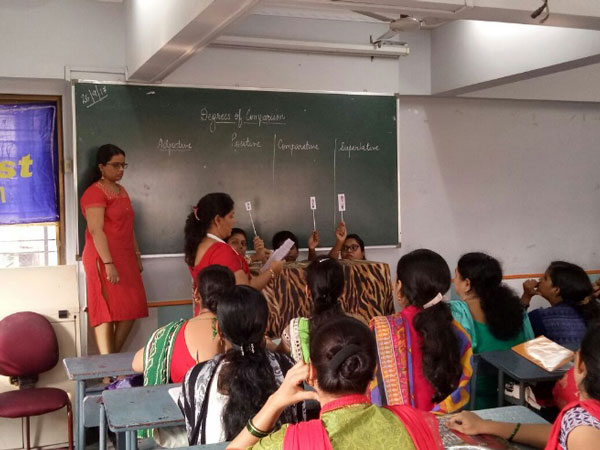 The ALD session on Degrees of Comparison was conducted on 26th September,2017. The session introduced the participants to adjectives and then further explained the need of comparison of the adjectives. The topic Degrees of Comparison was clearly explained through a puppet show, which depicted three families. The adjectives such as short, tall, fat, high, young, strong, near, cheap, sweet, bright, dark, cold, fast, small, dry, happy, heavy, rich and other examples with respect to adding more and most in expressing the degree of Comparison.