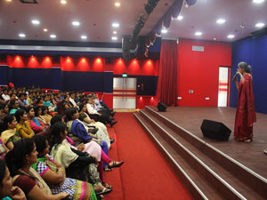 The function started with a short cultural programme by the management students of the Campus followed by the talk by Dr. Desai which was very interactive and motivating. She challenged the students to make catchy slogans on the inequality faced by girls in society and encouraged each student to play an active role by being conscious of their behaviour and attitudes towards women in general. More than 500 students and faculty members attended the function.