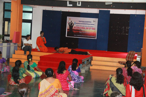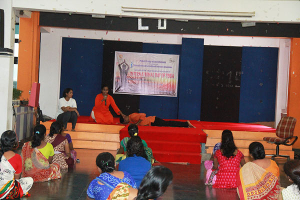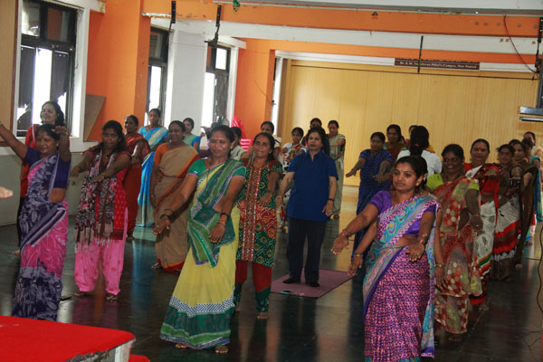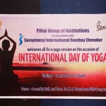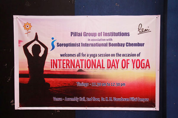 Soroptimist International Bombay Chembur observed International Day of Yoga in association with Mahatma Education Society’s Pillai Group of Institutions by conducting a yoga session for the underprivileged women who work as helpers at Dr. K. M. Vasudevan Pillai Campus. Yoga experts, Mr. Ashish Samarth and Mrs. Deepika Samarth from Vyaana Yoga Centre conducted the 90 minute session. The event was a grand success with around 40 women attending the session. The yoga experts spoke about the various health issues of women and the importance of making time for oneself and for exercise to remain fit and healthy. A series of yogasanas and breathing techniques was practiced during the session. The participants wholeheartedly participated in all the exercises and felt very relaxed after the session. Speaking on the occasion, Dr. Daphne Pillai, Founder President of Soroptimist International Bombay Chembur observed that “It is very fulfilling to provide such opportunities for the underprivileged in society and observing such UN declared dates like the International Day of Yoga helps to highlight the importance of being fit and healthy especially among the disadvantaged in society.”