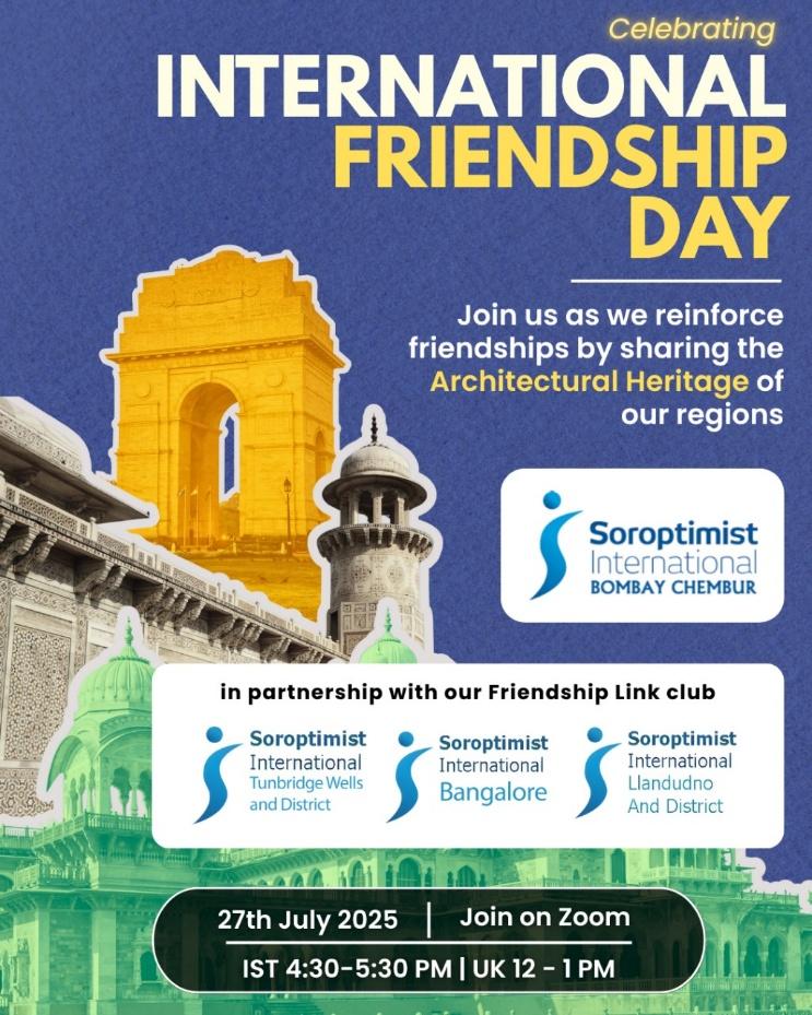 On 27th July, over a Zoom meeting, we got together with SI Bangalore India, SI Llandudno UK and SI Tunbridge Wells UK, to get a sneak peek into the “Architectural Heritage” of these regions while reinforcing our friendships. The friendship meet was joined by the members of these four clubs and many from other clubs in India, including NASI President Nayana Shah and other board members. PAC Celina Joy and President Preeti Pawar welcomed and greeted everyone to the online meetup.