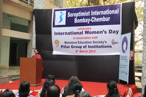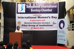 Soroptimist International Bombay-Chembur in association with Mahatma Education Society’s Pillai Group of Institutions celebrated International Women’s Day on 8th March 2013 at Dr. K M Vasudevan Pillai’s Campus, New Panvel from 3:45 pm to 5:00 pm.