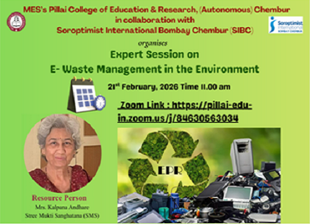 SI Bombay Chembur in collaboration with MES Pillai College of Education and Research (PCER), Autonomous, Chembur, and Stree Mukti Sanghatana, organized an Online Expert Session on “E-Waste Management in the Environment” on 21st February 2026.