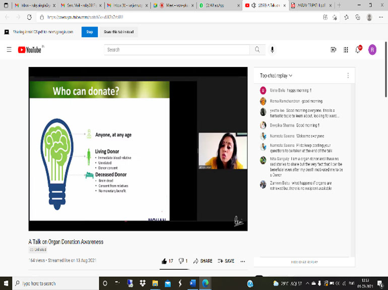 SIBC in association with Pillai College of Education and Research, New Panvel organized a talk titled “From Dust to Life” by Ms. Jaya Jairam, Project Head at Mohan Foundation to observe the Organ Donation Day on 13th August, 2021. The project aimed to bridge the gap between the need and the availability of organs by bringing awareness and busting the myths associated with organ donations and informing on the legalities to facilitate the process. The project aimed at supporting SDG #3 “Good Health and Well-Being”. The talk was hosted live on YouTube and there too around 167 views till the time of the report have been registered other than around 100 participants in the online meeting platform. The talk is available at https://www.youtube.com/watch?v=dJKBs7zbIlU