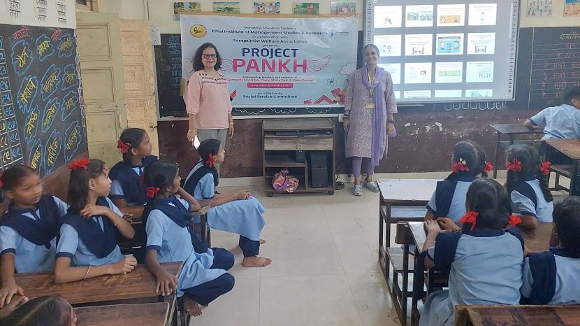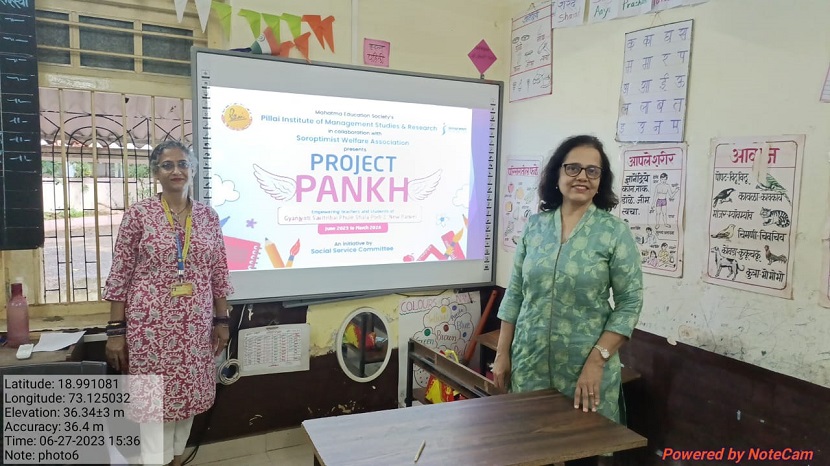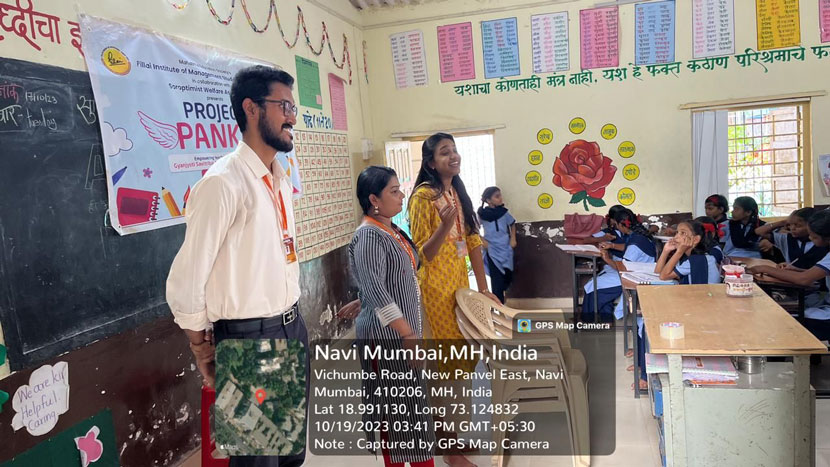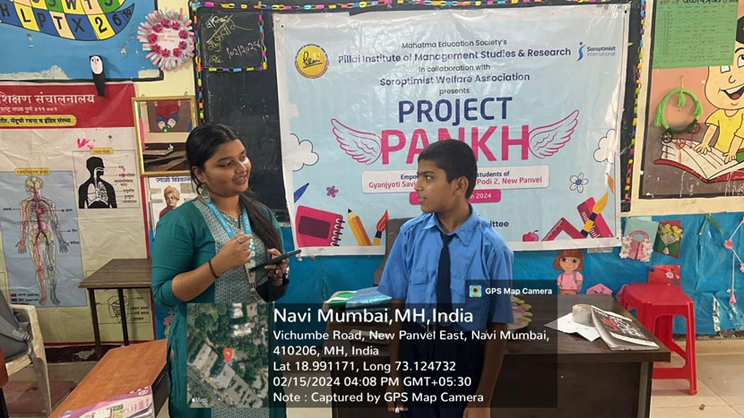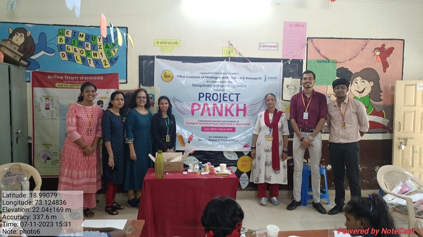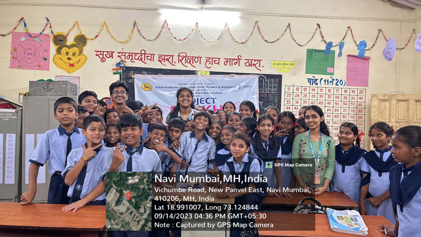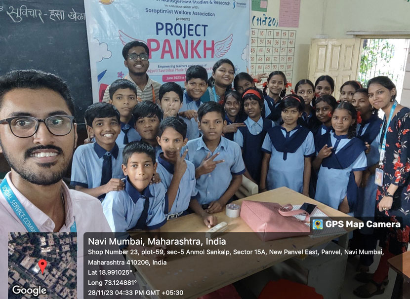 SIBC in collaboration with Pillai Institute of Management Studies and Research launched Project PANKH on 27th June, 2023 for the period June 2023 to March 2024. This collaborative long term project between Pillai Institute of Management Studies and Research and SIBC has a goal to provide a series of 20 workshops for both teachers and students of the municipal school, Gyanjyoti Savitribai Phule Shala, Podi 2, New Panvel for the overall holistic development of the school. The workshops were designed with a focus on improving literacy, providing skills for economic empowerment, awareness on personal development, addressing mental health and personal safety measures. Project PANKH’s unique feature was the active involvement of both students and faculty members as drivers of community development by leveraging their expertise to foster a sense of responsibility among the students themselves. The sessions conducted over 20 weeks of an hour each included Learning & Retention skills, Grammar & Vocabulary, Reading and Elementary English Language skills, Cyber Crime Awareness, Awareness campaign on animal welfare, Safe and Unsafe Touch, Cultivating team spirit, DIY Bag Making workshop among others. Eight teachers and 42 students benefited from this initiative that was conducted by student and faculty volunteers and SIBC members.