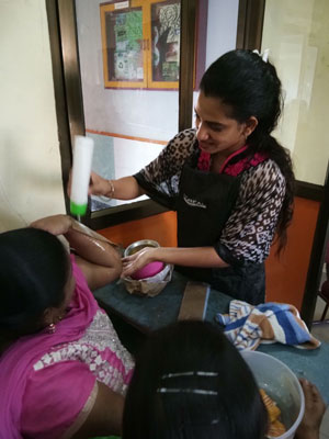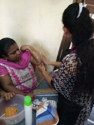 Today’s sessions on Skill development was taken up by Ms. Nasreen Khan who focused on ‘Waxing.’ Ms. Khan she explained the theory of the strokes to be used while waxing and the direction that these strokes have to be used. The skin on various parts of the body are different and hence the pressure applied also needs to be varied.