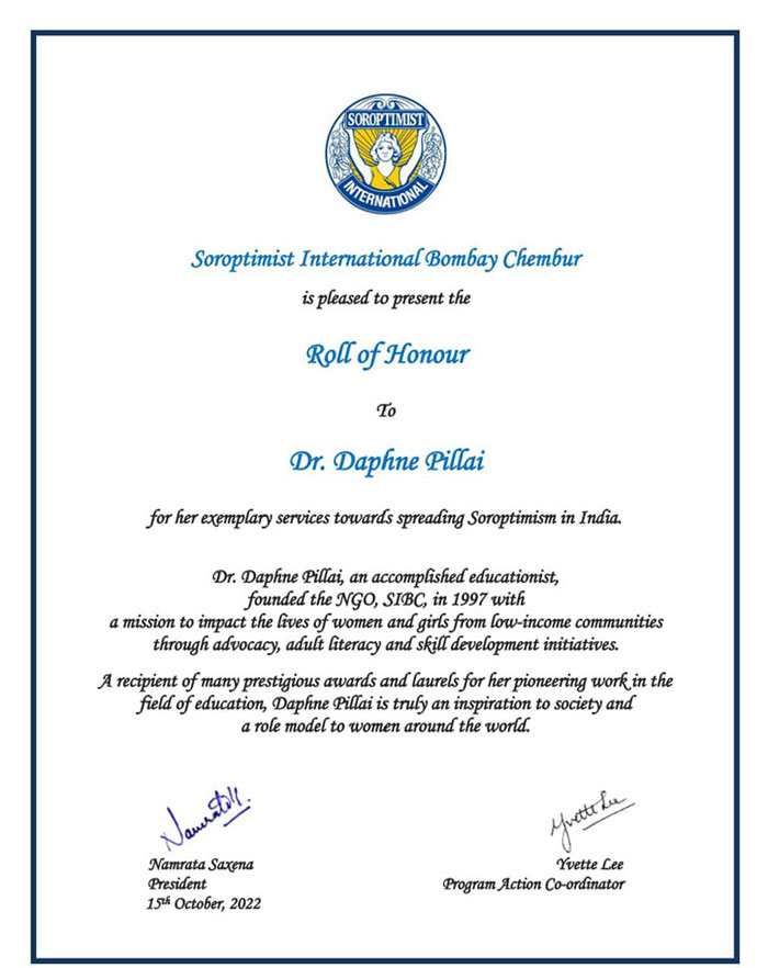 All possible with the visionary direction and encouraging support of our adorable Founder President, Dr. Daphne Pillai! It was this with great pleasure, at the end of the celebration, a roll of honour was presented to Dr. Daphne Pillai by SIBC members for her exemplary services towards spreading Soroptimism in India. Thanks to all sisters who joined and doubled our joy with their presence! Thanks to all good wishes for cheering us on our 25th Anniversary!