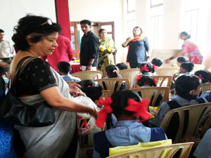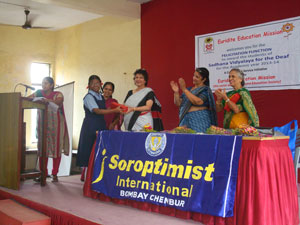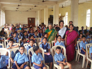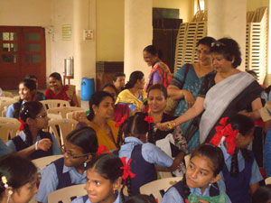 SIBC organised a visit to Sadhana Vidyalaya for the Deaf on 20th June, 2014. SIBC members, Dr. Daphne Pillai, Ms. Seeta Desai, Dr. Jayashree Ramathan and Yvette Lee reached the School at around 2 pm and spent a wonderful afternoon with the students. The event was attended by 75 students from the English, Hindi & Marathi medium and 25 teachers of the school. The event began by a short introductory talk by Ms. Seeta Desai which was followed by the presentation of a cheque to Saaniya Jadhav, a student, whose education SIBC has been sponsoring for the last 3 years. This was followed by the felicitation of rankholder students from Classes 1 to 10. These ten students were presented with gift wrapped water sippers. The audience cheered for all these winners and it was a motivating experience for all of them. After the felicitation ceremony, snacks were distributed and the movie ‘Lion King’ was screened for the students. The students enjoyed the movie and had a wonderful time. Mrs. Shelar, the Principal of the school, thanked the members of SIBC and appreciated their efforts to spread happiness and cheer in the lives of these disadvantaged students.The program was coordinated by Ms. Seeta Desai, Ms. Celina Joy and Ms. Yvette Lee.
