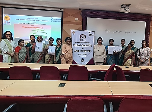 SI Bombay Chembur in collaboration with Pillai Institute of Management Studies and Research (PIMSR) and Pillai College of Architecture (PiCA) celebrated World Environment Day by conducting an innovative event for the women support staff of Pillai Educational Campus at Panvel. The event was kickstarted with Dr. Celina Joy welcoming the participants and explaining the objective of the event. There was a screening of a short documentary on the importance of water conservation in our daily life and a short discussion on the same was conducted by the members. This was followed by poster making activity in which our members Celina Joy, Betty Sibil and Smita Dalvi inspired the women to brainstorm ideas in smaller groups and try their hands at drawing them out with material provided like colour pens, sketch pens and markers. There was a buzz of animated discussion and a flurry of stroke making as the women got engrossed in the task. The output was amazingly creative and the participants greatly enjoyed the chance to put their ideas on paper. Our founding president Dr. Daphne Pillai was present to motivate and compliment them on their posters which will be displayed on the notice boards of the campus. The best of the works were awarded cash prizes to be shared by the group members. The event concluded with tea and biscuits served to all participants.